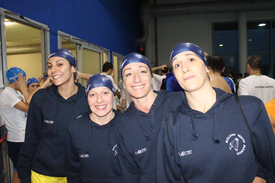 Tra le staffette, nella 4×50 stile libero, il quartetto rosa formato da Rossana, Chiara L., Alessandra e Daniela perde sì la scommessa ai punti con le compagne di squadra “non più giovani” della categoria M120-159, ma migliora il record sociale nella categoria delle “zie” (160-199).